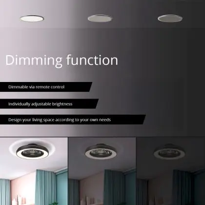 Dank seines flüsterleisen Motors sorgt der Brilliant Mazzaro Ventilator Plastik Schwarz 36W 4700lm - 830-865 CCT+RGB | 485mm - Fernsteuerung Dimmbar für angenehme Luftbewegung ohne störende Geräuschkulisse – ideal in Räumen, in denen Ruhe gefragt ist, etwa im Schlafzimmer oder im Home-Office.