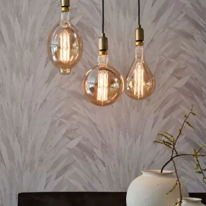 Die Calex XXL Hohe Lumen Gold Komplettset - Including 3 XXL Glühbirnes + Cordset Rund basis sorgt für eine angenehme Ausleuchtung und punktet durch modernes Design. Diese Leuchte ist speziell zur Montage an der Decke vorgesehen.