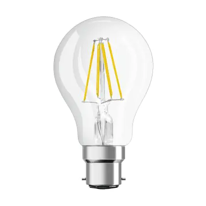 Die Ledvance Classic Performance LED Glühbirne B22d Birne Fadenlampe Klar 4W 470lm - 827 Extra Warmweiß | Ersatz für 40W ist eine effiziente B22d LED-Lampe mit Retrodesign und der perfekte Ersatz für Ihre konventionellen 40W Lampen mit B22d. Zudem strahlt sie Licht in der Farbtemperatur 2700K - Extra Warmweiß aus und punktet durch eine lange Lebensdauer.