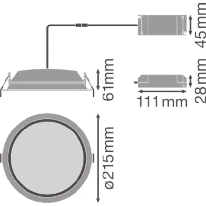 Beschreibung Ledvance LED Downlight Alu DN200 25W 2370lm 100D - 840 Kaltweiß | 215mm - IP44 - Dali Dimmbar