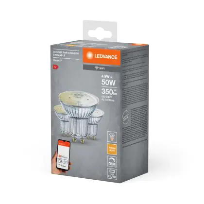 Der Ledvance Smart+ Wifi GU10 Spot 5W 350lm 45D - 827 Extra Warmweiß | Dimmbar - Ersatz für 40W ist ein leistungsstarker LED-Strahler mit -Sockel. Er kommt mit einer hohen Lebensdauer von 20000 Stunden daher und spart Ihnen somit nicht nur Energie-, sondern auch Austausch- und Wartungskosten. Im Preis ist zudem eine All-In-Garantie von 3 Jahre enthalten.