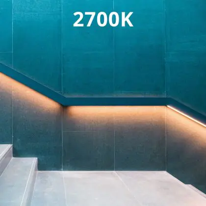 Der LED-Streifen weist eine Farbtemperatur von Extra Warmweiß (2.700 K) auf. Somit ist er perfekt für Räume geeignet, in denen Sie eine gemütliche und warme Atmosphäre erschaffen möchten – zum Beispiel für das Schlafzimmer oder eine Lounge.