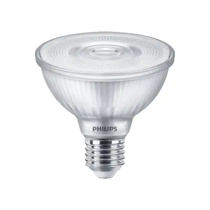 Der Philips LEDspot E27 PAR30S 9.5W 827 25D 740lm (MASTER) ist nicht nur äußerst langlebig (25.000 Stunden), sondern kommt auch mit einer exzellenten Energieeffizienz daher. Tauschen Sie herkömmliche Halogenstrahler mit ihm, können Sie bis zu 87 % Energiekosten sparen. Zudem ist der LED-Strahler dimmbar, wodurch sie die Beleuchtung individuell anpassen können.