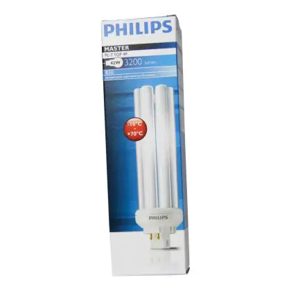 Philips PL-T TOP 4P besitzen eine 4 polige Buchse. Diese Leuchtstofflampen bieten eine optimierte Lichtleistung für den Einsatz in unterschiedlichen Temperaturbereichen. Mit ihrem GX24q-4 Sockel sind Philips PL-T TOP 42W 830 4P leicht in die passenden Leuchten zu installieren.